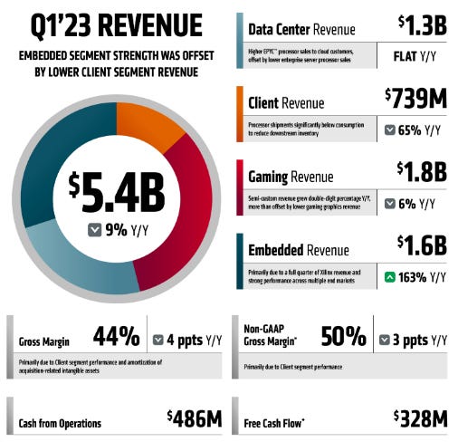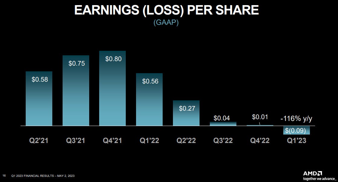 Inmediatamente después de la publicación de sus resultados del primer trimestre de 2023, comenzaron a circular rumores de que el fabricante de chips había estado trabajando con Microsoft en su proyecto secreto Athena (se especula que se trata de diseñar chips). La directora ejecutiva de AMD, Lisa Su, hizo todo lo posible para distraer a los inversores del cuarto trimestre consecutivo de caída de beneficios de AMD lanzando generosamente las palabras "artificial" e "inteligencia" en la conferencia telefónica posterior a los beneficios. No pareció funcionar, dado que el precio de las acciones de AMD se hundió un 9 % al día siguiente, pero seguidamente empezó a correr el rumor y las acciones de AMD revirtieron todas esas pérdidas.