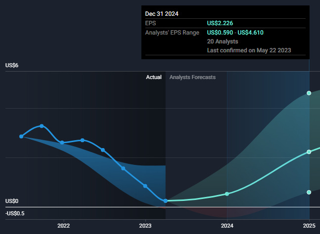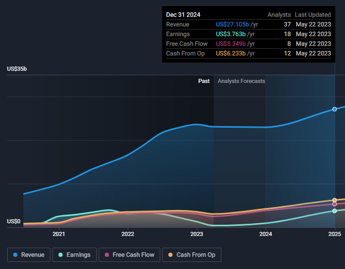 En coalición con los datos expuestos en el anterior párrafo, también se espera que el EPS de crezca un 46,7%, lo que lo situaría sobre los 2,226 dólares/acción para finales de 2024.